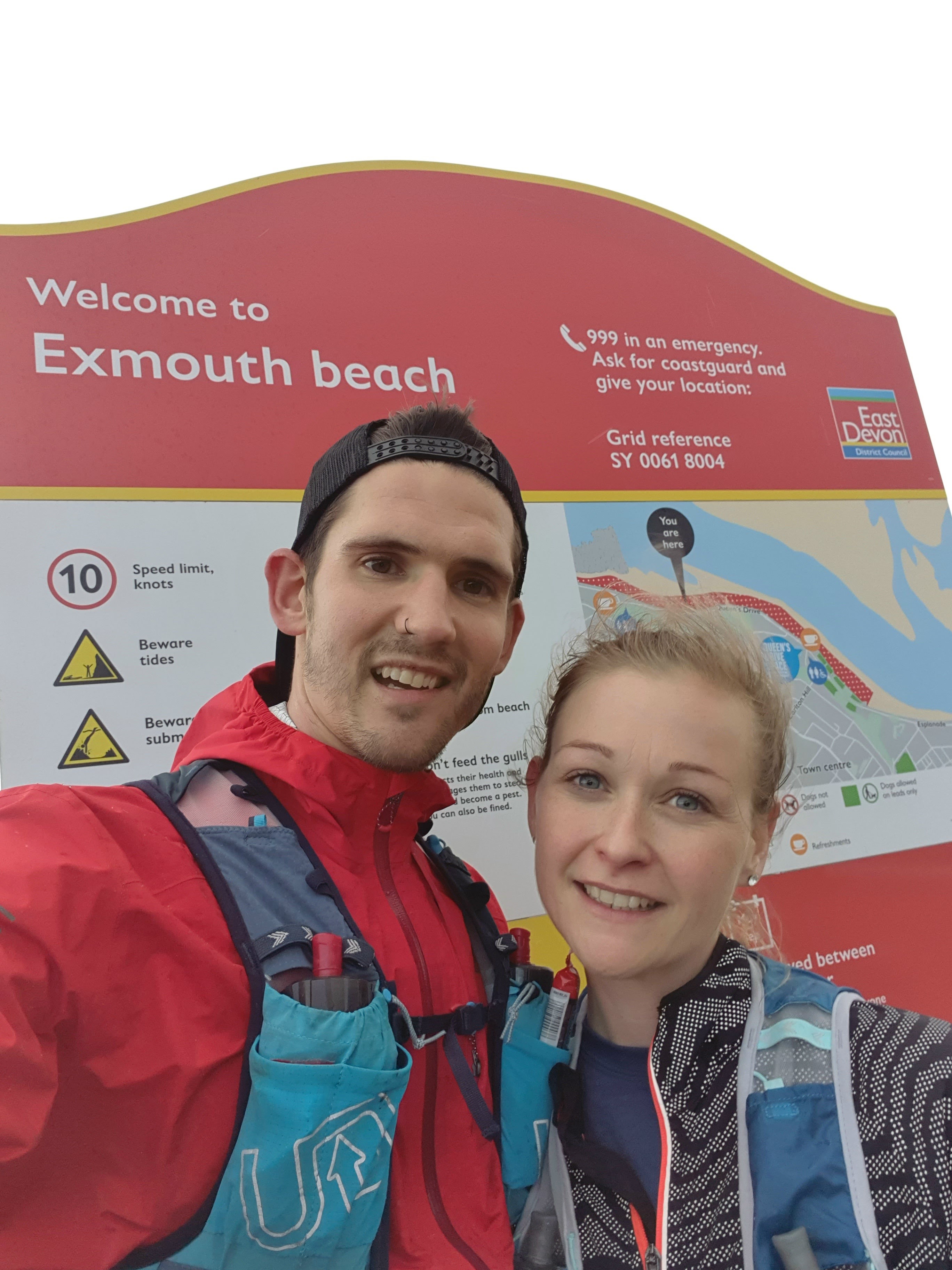 We weren’t moving badly and taking in the views as we hit more forgiving sections we managed to run a fair few miles at a quicker pace to bring us into Sidmouth and the first bigger town on the leg for the day around the half way mark. A long promenade gave the legs some much needed relief before leaving the town and onto the coast path again and the rolling hills towards Budleigh Salterton. The wind was still blowing straight into our faces as we hit a short section of road taking us out of Sidmouth, following the wooden posts that have guided us this far we stopped to make a left hand turning back towards the cliffs. Kirsty got there first and confirmed this was the direction pointing up to the sign and exclaiming it was “this way to the unlicensed cliff tops”. Moments later as I caught up and after initially not questioning what she said, I read the sign and then got her to re-read it. Bursting with laughter as she this time read it properly and realised it actually said “unfenced cliff tops”. Actually needing a few minutes to calm down and keep her bladder under control we set off again still chuckling away. It wasn’t long before she got her own back as half way up the next hill fatigue had overridden the power of speech and what was meant to be a sentence with energy and effort had somehow come out as ‘enerfort’! A day of vocabulary fails, but a word that will likely stick with us!