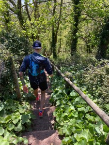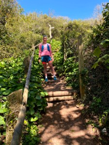 Getting off the ferry in Shaldon we very quickly hit the trails again and things started to go up! We had hit a few hills and a couple of long flights of steps to climb so far but at this point things went to another level. The trail was stunning and now well away from towns got a lot quieter. It weaved its way up and down into each cove and back up again with set of steps after set of steps to help you along. The miles ticked off a lot slower as we walked up the steps and shuffled on the downs, just aiming to keep moving. What started as a bit of a joke though soon got pretty tough, each climb with its relentless steps sapping the legs further. The trails were still stunning, into and out of wooded areas, views of the coast line from the high points and secluded beaches at the low points.